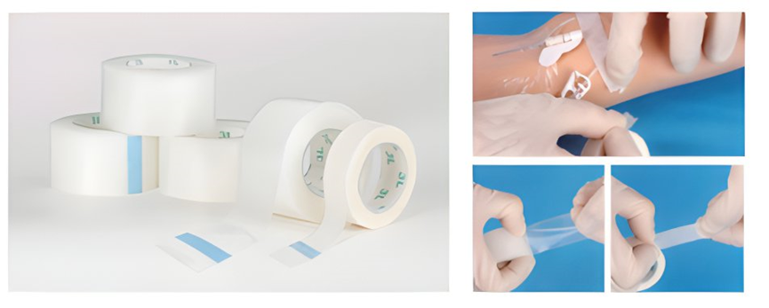 - Perforated PE film tape is transparent and odor free, allows visualization of the skin.